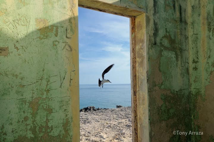 In between diving I took a swim to the island and scrambled up the sea urchin filled rocks along the shore and to the top of the island where the lighthouse sat. There I came across a small abandoned warehouse and framed an image with my camera looking out a doorway. At the moment I was prepared to snap the shutter a tern came flying right towards the opened doorway; apparently this building was its home.